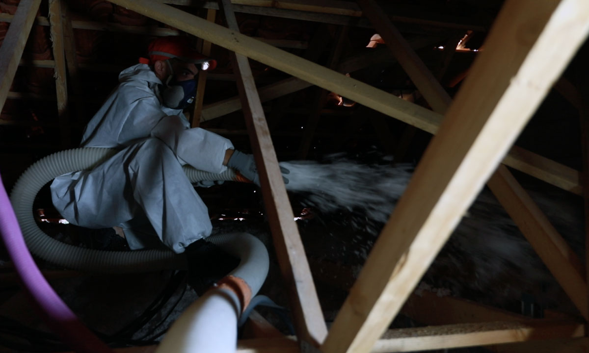 Ce processus très rapide à mettre en place consiste à souffler des flocons d’isolant à l’aide d’une machine type cadreuse. Ces flocons sont en laine minérale : laine de verre, laine de roche, ouate de cellulose, laine de bois.